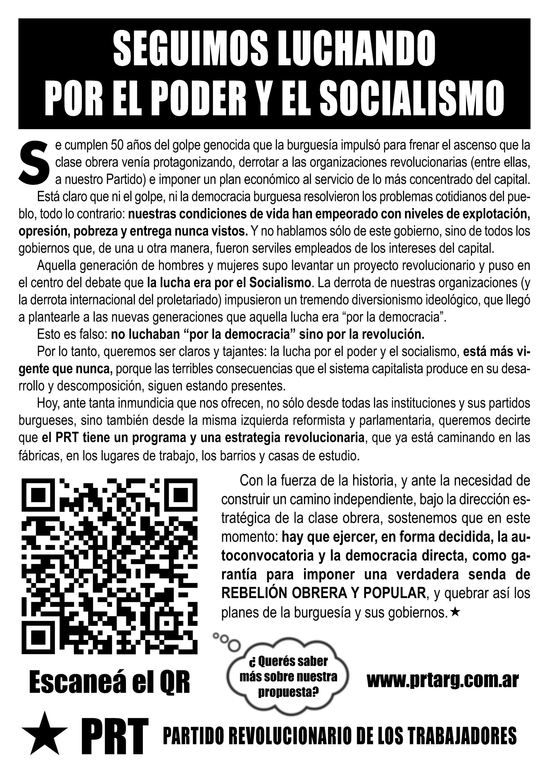 Seguimos luchando por el poder y el socialismo